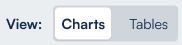 This will open the Filter panel, where you have different options depending on whether you are in Charts view or Tables view. Select “Apply” to apply your choices, “Cancel” to exit the filter panel without applying changes, and “Reset” to reset your filters to their default values. Your selected filters will appear in the Selected filters panel above the charts or tables.